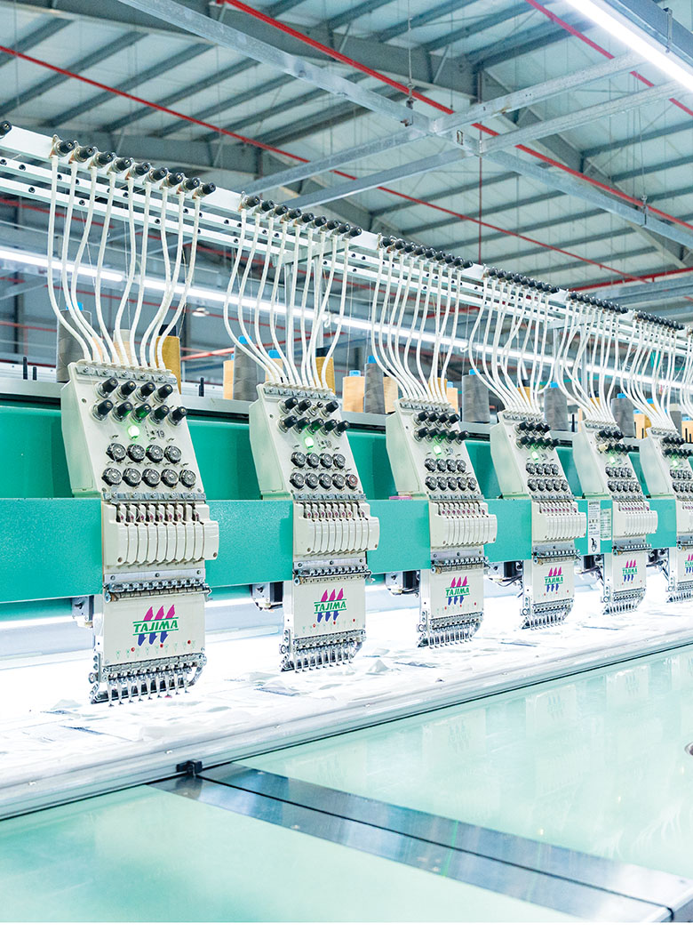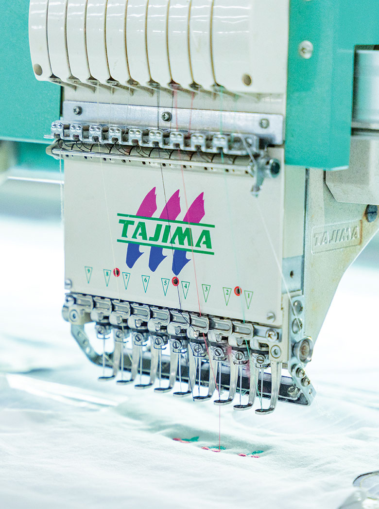 In-house printing, embroidery, and finishing facilities enable consistent